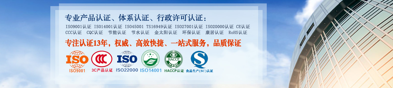 ,TS/16949,ISO22000,HACCP,CE,UL,ROHS,SGS及工業(yè)生產(chǎn)許可證,QS食品安全許可證,有機(jī)認(rèn)證等各類(lèi)體系及產(chǎn)品認(rèn)證服務(wù)。是經(jīng)國(guó)家工商行政管理部門(mén)登記注冊(cè)的專(zhuān)業(yè)認(rèn)證咨詢(xún)機(jī)構(gòu);澤誠(chéng)認(rèn)證公司秉承“誠(chéng)信做
